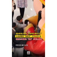 小孩哥“钻”进财神爷怀里出不来了