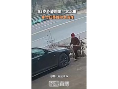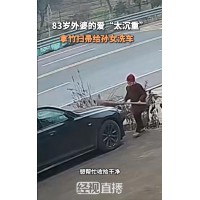 83岁外婆拿竹扫帚给孙女洗车