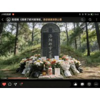 网民发布的视频画面显示,一处林地中立着一块南唐后主李煜的墓碑,上写着:“这里埋葬了一个诗人,从国主到囚徒,从风花雪月到悲凉,他在这里走完了他的一生。”坟前摆满了鲜花、酒瓶以及各地网民带来的特产,并悬挂着网民凭吊的留言。
