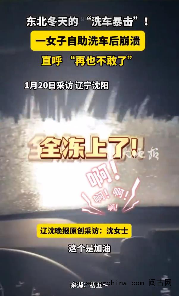 【#女子零下30度洗车边洗边结冰#】#女子回应零下30度洗车边洗边结冰#1月20日(采访时间),辽宁沈阳。一位车主分享了在零下30℃天气下自助洗车的“惨痛”经历:水流喷上车身的瞬间便开始结冰,边洗边冻,最终整辆车被冰层覆盖,宛如“冰糖小汽车”。车主称,自己是因加油获赠免费洗车才去尝试的,还特意选了中午“最暖和”的时候,结果依然如此。网友:这是东北冬天对洗车人独有的“暴击”。 (纵览新闻)来源:纵览新闻的微博视频