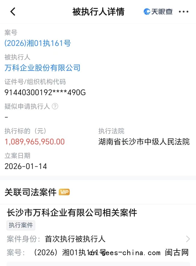 万科还存在14条股权冻结信息。其中,2025年12月30日和12月17日分别被冻结2.5亿元和5.7亿元。