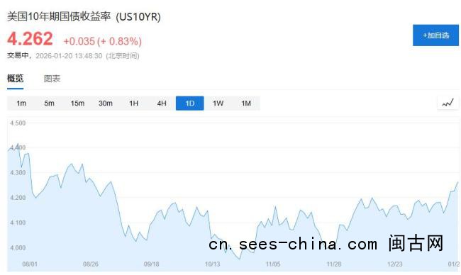 特朗普总统计划对部分欧洲国家征收关税以推进收购格陵兰岛的计划,重新引发市场对其政府政策不可预测性的担忧。这一举措可能加剧通胀压力,并引发对财政赤字扩大的进一步忧虑。