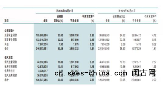 资产质量层面,东莞农商行呈现对公稳健、零售承压的显著分化格局。2025年末全行整体不良贷款率1.79%,同比微降0.05个百分点;公司贷款不良率1.51%,同比下降0.3个百分点,对公风控持续向好。